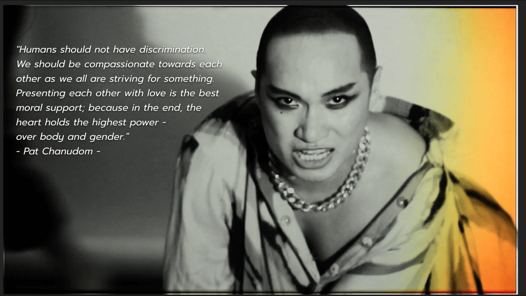 LGBTQ children are one of the most suppressed and abused, and the band wanted to empower them through one of their local LGBTQ heroes, ‘Pat’ Chanudom. Although Pat was fortunate to be raised by parents whom understood her, supported her and gave her the freedom to be who she is, she agreed to lend us her talent and image to give a voice to those having to hide their true identities, ambitions or suffering from other forms of domestic abuse and suppression.